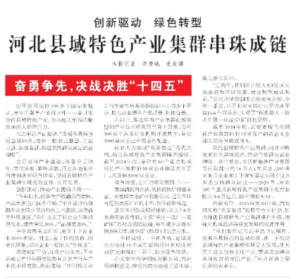 安平丝网远销190多个国家和地区,肃宁乐器年产逾百万件……各具优势的县域特色产业,为燕赵大地高质量发展注入澎湃活力。 习近平总书记强调,发展各具特色的县域经济,培育一批农业强县、工业大县、旅